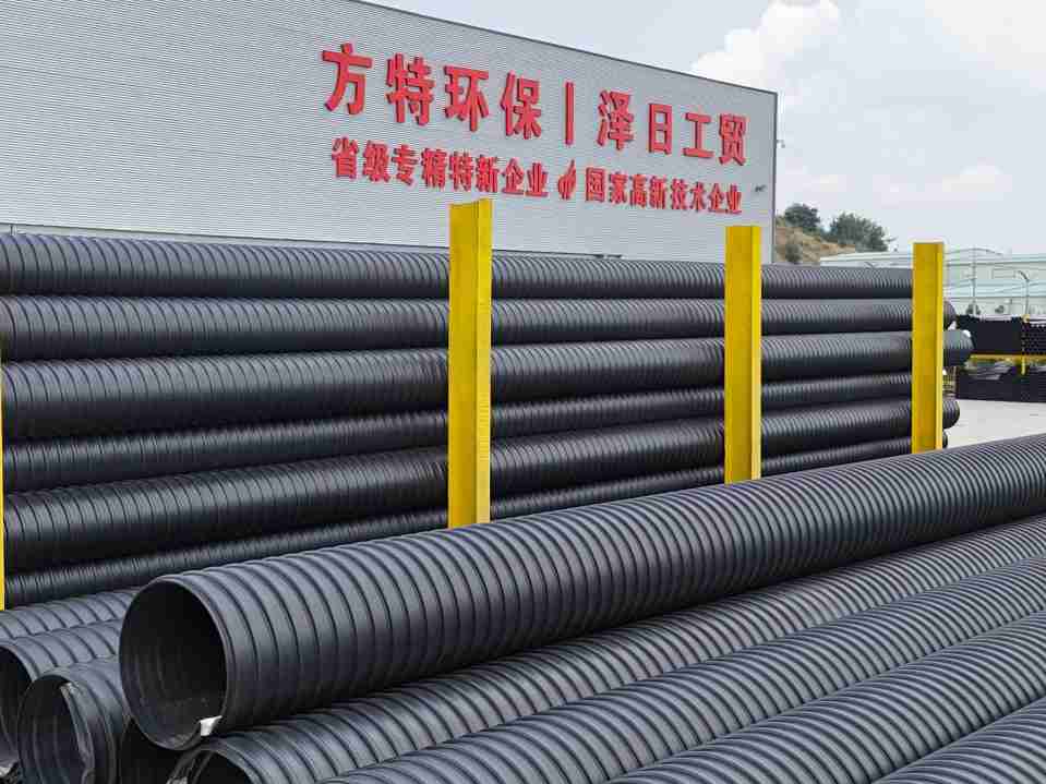 排水管生產線8條,生產品種有HDPE雙壁波紋管、鋼帶增強聚乙烯(PE)螺旋波紋管、HDPE中空壁纏繞管;